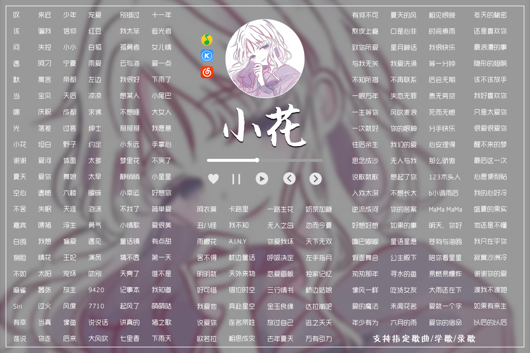 我是歌手小花,擅长流行古风小甜歌,还会一些高音歌曲,一些粤语闽南语,日语韩语英语歌~期待您的聆听!